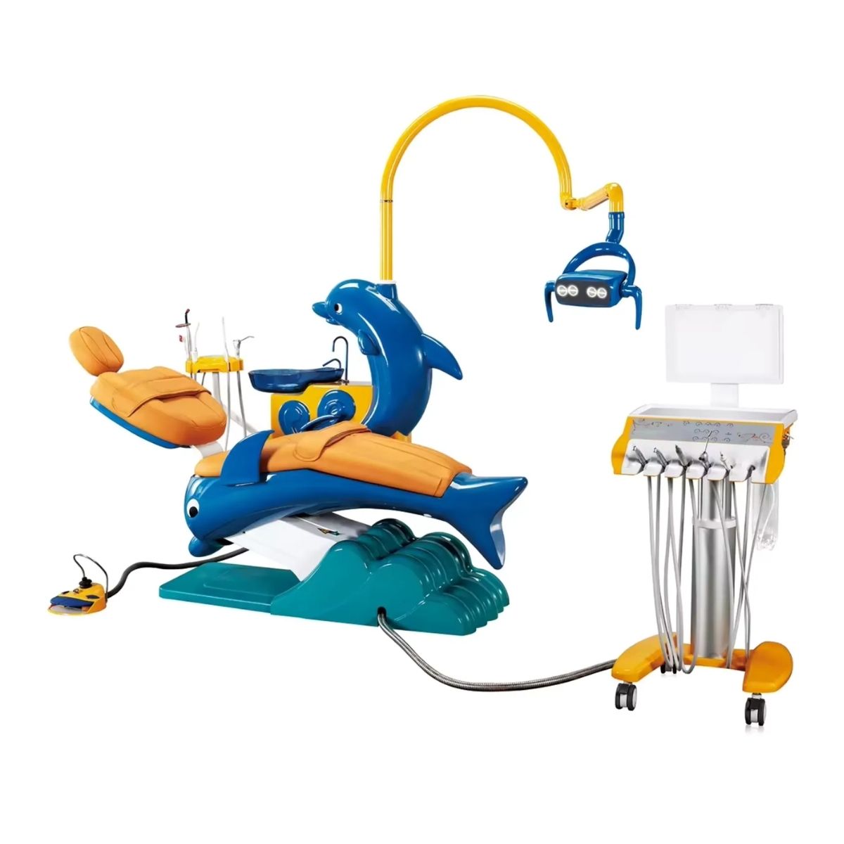 Ghế nha khoa Chuanxin DTC-326 nổi bật với thiết kế hình cá heo sinh động, giúp tạo sự gần gũi và giảm cảm giác lo sợ cho trẻ ngay từ lần thăm khám đầu tiên.