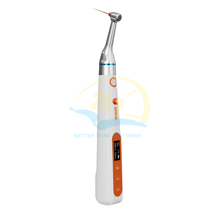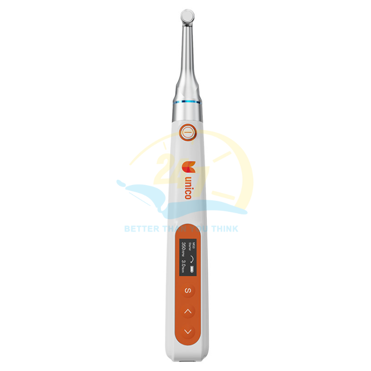 Máy nội nha U-Motor là thiết bị không dây hiện đại, hỗ trợ điều trị tủy hiệu quả với tốc độ lên tới 1000 vòng/phút và mô-men xoắn 5 N·cm. Thiết kế nhẹ chỉ 114g, màn hình OLED xoay linh hoạt, đầu contra-angle 360° giúp thao tác chính xác, thoải mái. Tích hợp sẵn thông số trâm – tiết kiệm thời gian, hạn chế gãy trâm.