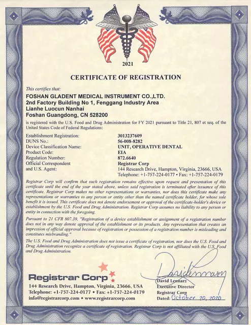 Gladent tên đầy đủ là Foshan Gladent Medical Instrument Co., Ltd có trụ sở tại Thành phố Phật Sơn, tỉnh Quảng Đông, Trung Quốc. Gladent được thành lập vào năm 2013 và chuyên sản xuất các dòng ghế nha khoa có chất lượng cao với mức giá cạnh tranh.